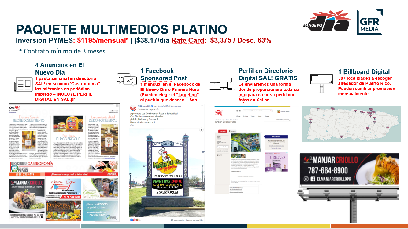 Los «Paquetes Multimedios» para PYMES de El Nuevo Día/Primera Hora en Puerto Rico estan diseñados para restaurantes locales. Aquí te muestro 3 de los paquetes multimedios más populares: